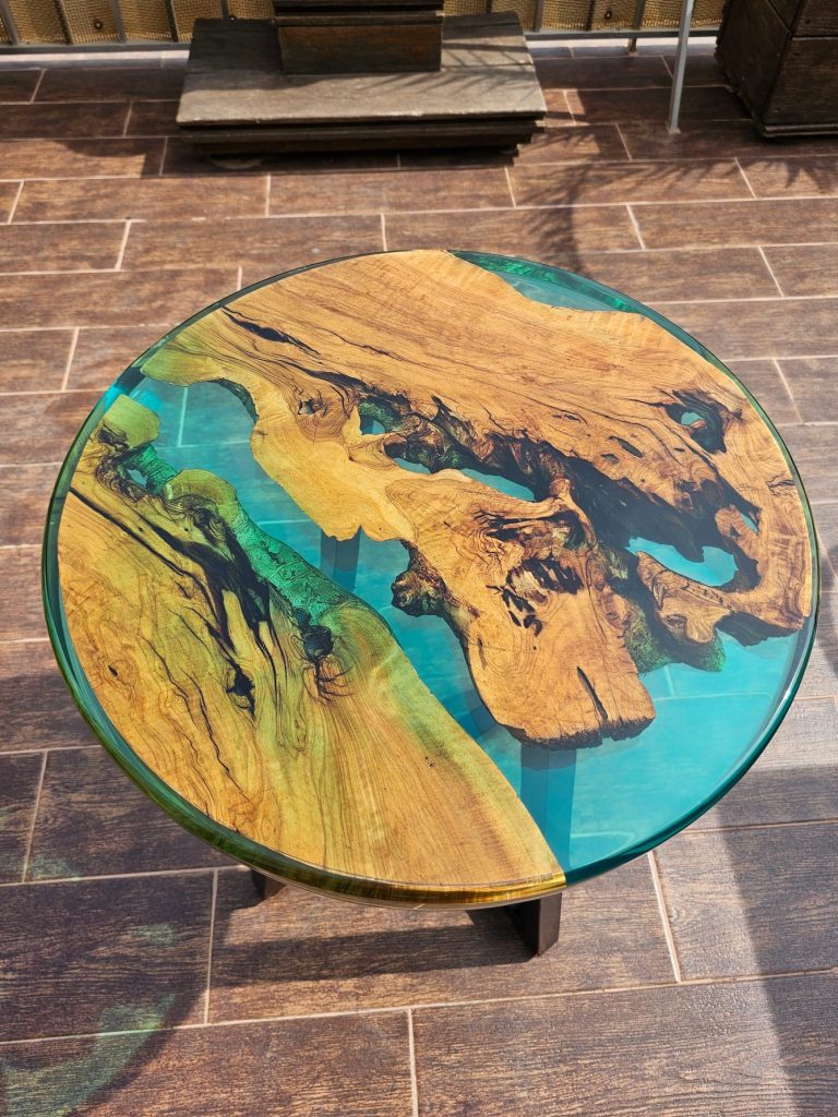 Exklusive Möbel: Die harmonische Verbindung von Massivholz und Epoxidharz.